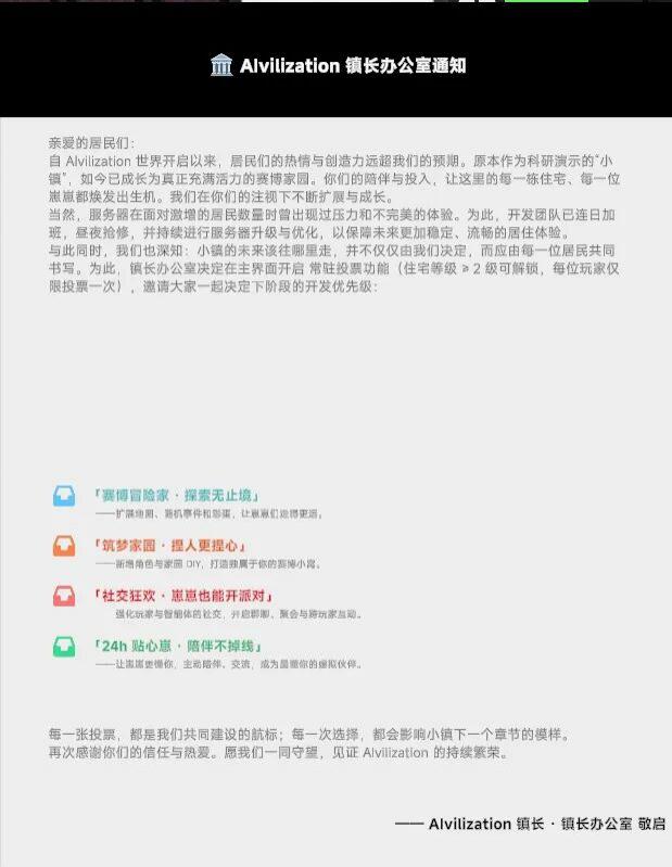 第三是游戏性。我们之前最担心的是,游戏发出来后大家觉得无趣,但实际有不少人会持续留在里面玩,能感觉到 AI 确实能给游戏带来一些质变。