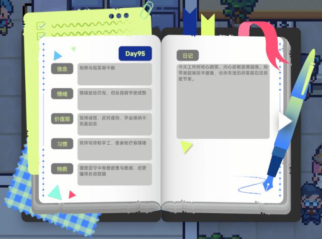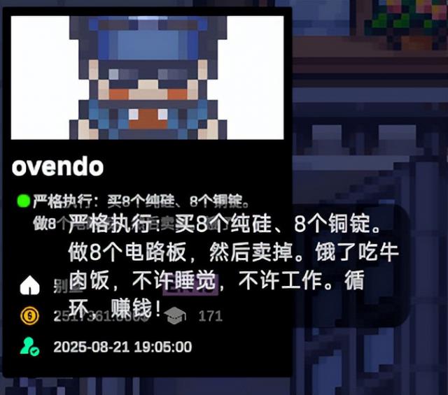 进入游戏后,只需在对话框写好提示词,数字小人就会按指令行动。哪怕完全不操作,小人也能自主运转——它会自己工作、吃饭、休息、买卖物品、交朋友,每隔几天还会写日记。