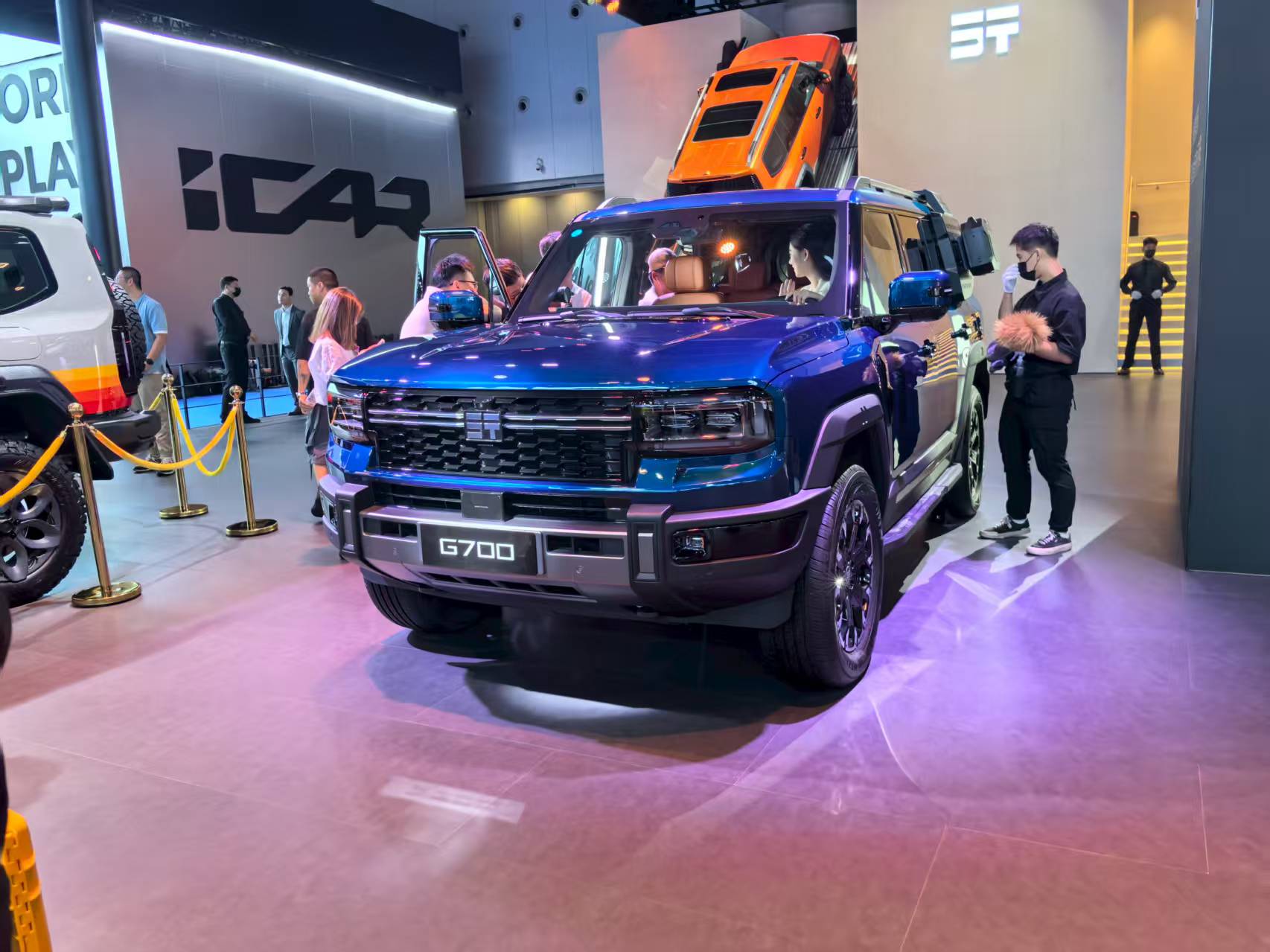 纵横 G700采用“方盒子” 造型,线条凌厉,搭配熏黑多边形格栅与矩形 LED 大灯组,格栅内嵌可发光标识,辨识度较高。新车提供梅里橙在内的七种车身颜色和三种内饰配色。