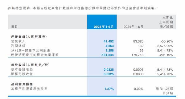 中国网财经9月30日讯昨日,中泰期货(证券代码:01461.HK)发布2025中期报告披露,报告期内,本集团实现营业收入人民币4.15亿元(41,492万元),较去年同期的人民币8.33亿元(83,320万元)下降50.20%。中泰期货表示,营业收入同比下降主要原因一是根据中国期货业协会2024年11月15日发布的《期货风险管理公司大宗商品风险管理业务管理规则》,中泰汇融资本自2025年1月1日起对同一交易日内签署采购和销售合同等六大类贸易类业务采用净额法确认收入,会计核算方法发生了变更;二是受宏观环境影响,大宗商品市场需求疲软,贸易收入下降。实现归属于本公司股东的净利润人民币3,258万元,较去年同期的人民币59万元增长5,414.73%。中泰期货表示,实现归属于本公司股东的净利润同比上升主要原因一是2025年上半年,本集团注重功能发挥、聚焦主责主业、深化改革创新、强化管理、提振作风,经营发展呈现稳中向好、提质增效的良好态势;二是受2024年同期较低基数影响。