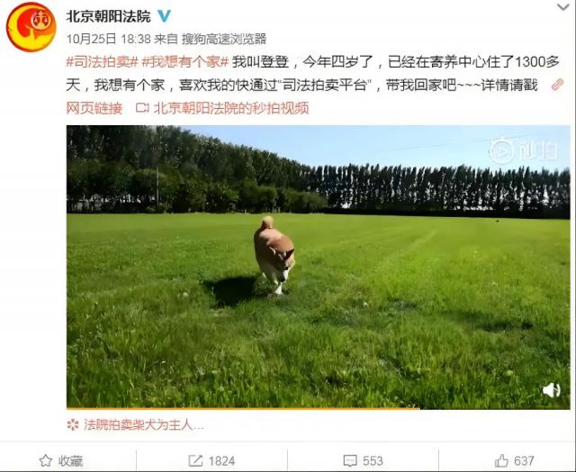 2018 年 10 月 25 日,北京朝阳法院将一只柴犬挂在法拍网上,以 500 元起拍。在此之前 4 年,柴犬"登登"被主人送到宠物寄养中心,期满后主人一直没来接,拖欠寄养中心数万元费用。寄养中心走了司法程序,"登登"才被法院拍卖。